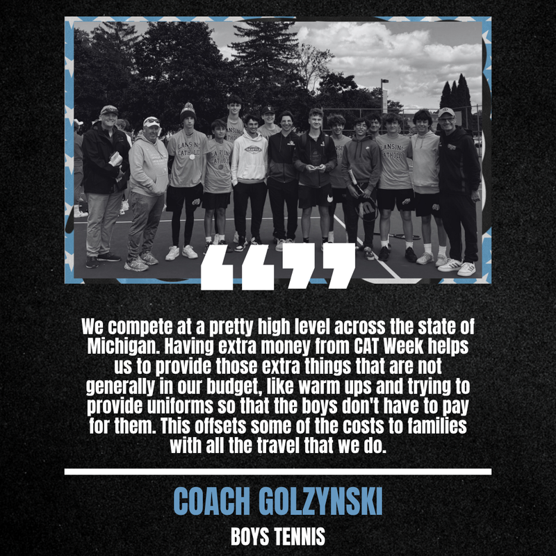 As the overall cost of providing an ELITE student-athlete experience continues to rise, support from our Cougar Family is more crucial than ever. We hope you'll be one of the 10 donors to give to Lansing Catholic Boys Tennis today!