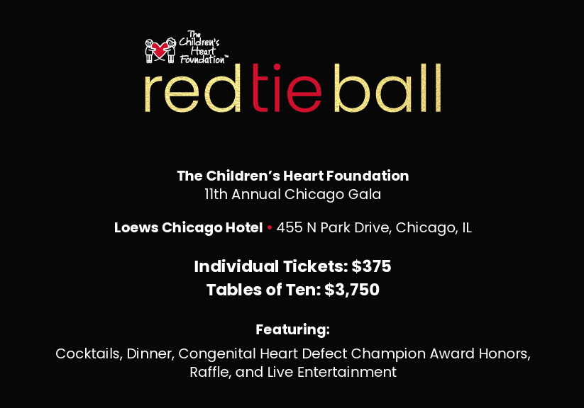 - 7:00 PM | Dinner & Red Tie Ball Program Congenital Heart Defect Champion Award Honors, Live Auction, and Open Your Hearts Paddle Raise
