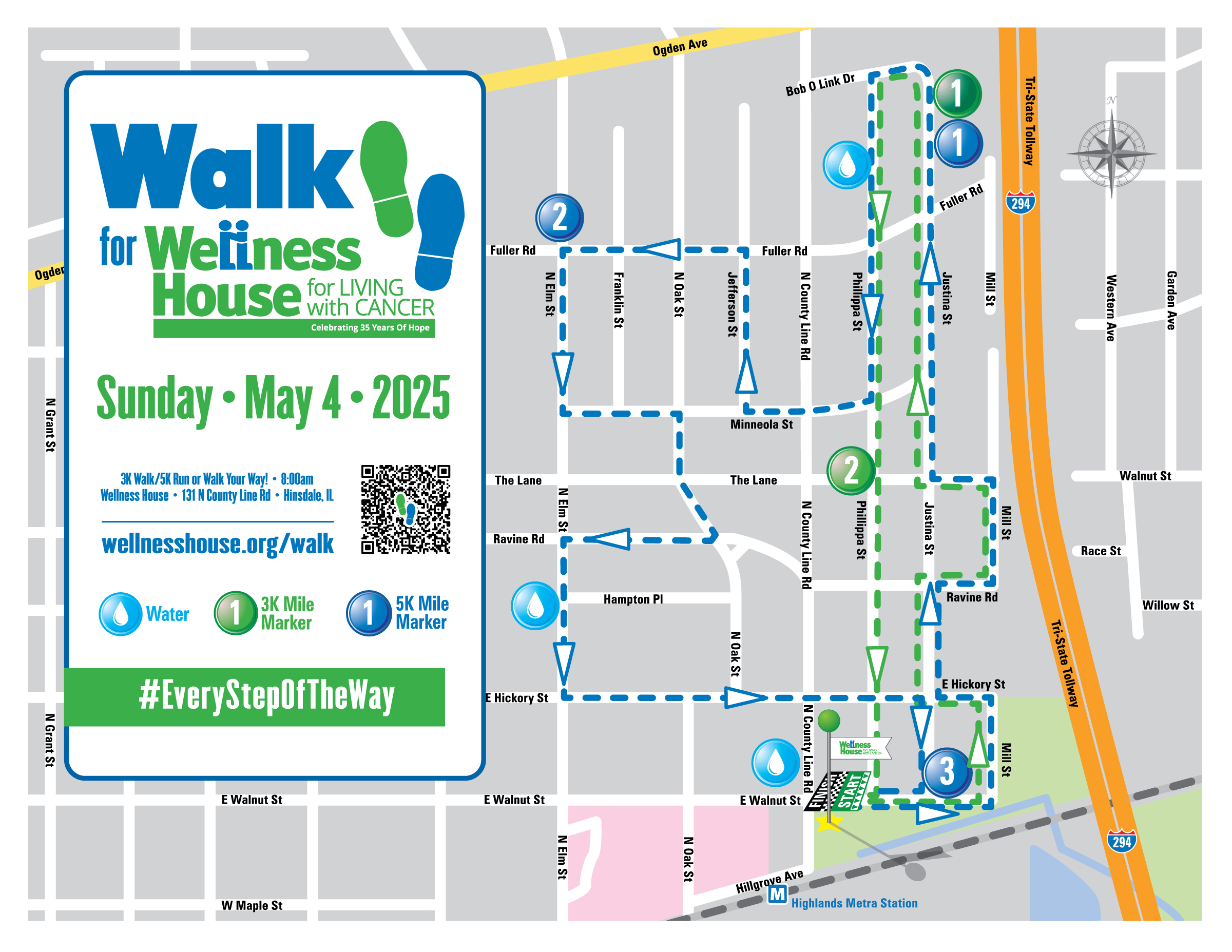 The Walk for Wellness House is on Sunday, May 4, 2025 at the main Wellness House location (131 N. County Line Rd, Hinsdale, IL 60521). See course map(s) on this page.
