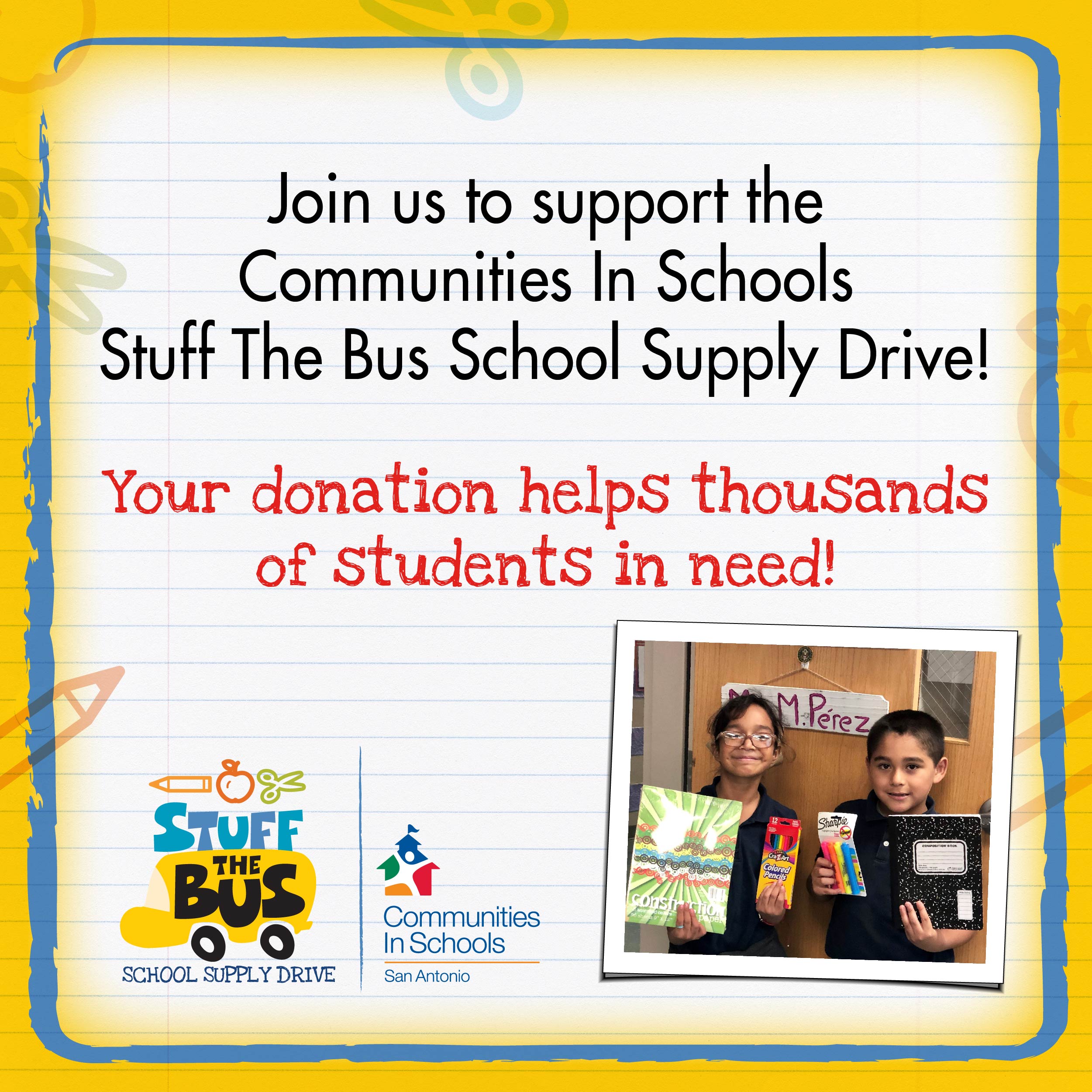 (Sample Post: Facebook) This summer, [company name/organization name/I] am fundraising to support #StuffTheBusSAso that @CISSanAntonio can provide the necessary school supplies to students in need. Our community has been directly impacted by COVID-19, but this shouldn’t affect whether or not students have access to the tools they need to succeed in school. Click here [include link to fundraising page] to donate!