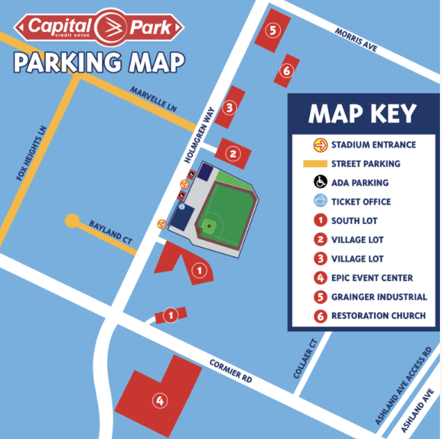 - There are over 1000 parking spaces within a 5 minute walk to Capital Credit Union Park. The Village of Ashwaubenon lots, Epic Event Center, Ashley Furniture, Grainger Industrial Supply, and Restoration Church have all given permission for the community to park in their lots free of charge. Street parking on Bayland Court and Marvelle Lane will also be available. Please only park in lots that are approved for parking. Parking at a business not listed on the map may lead to your vehicle being towed at your expense.