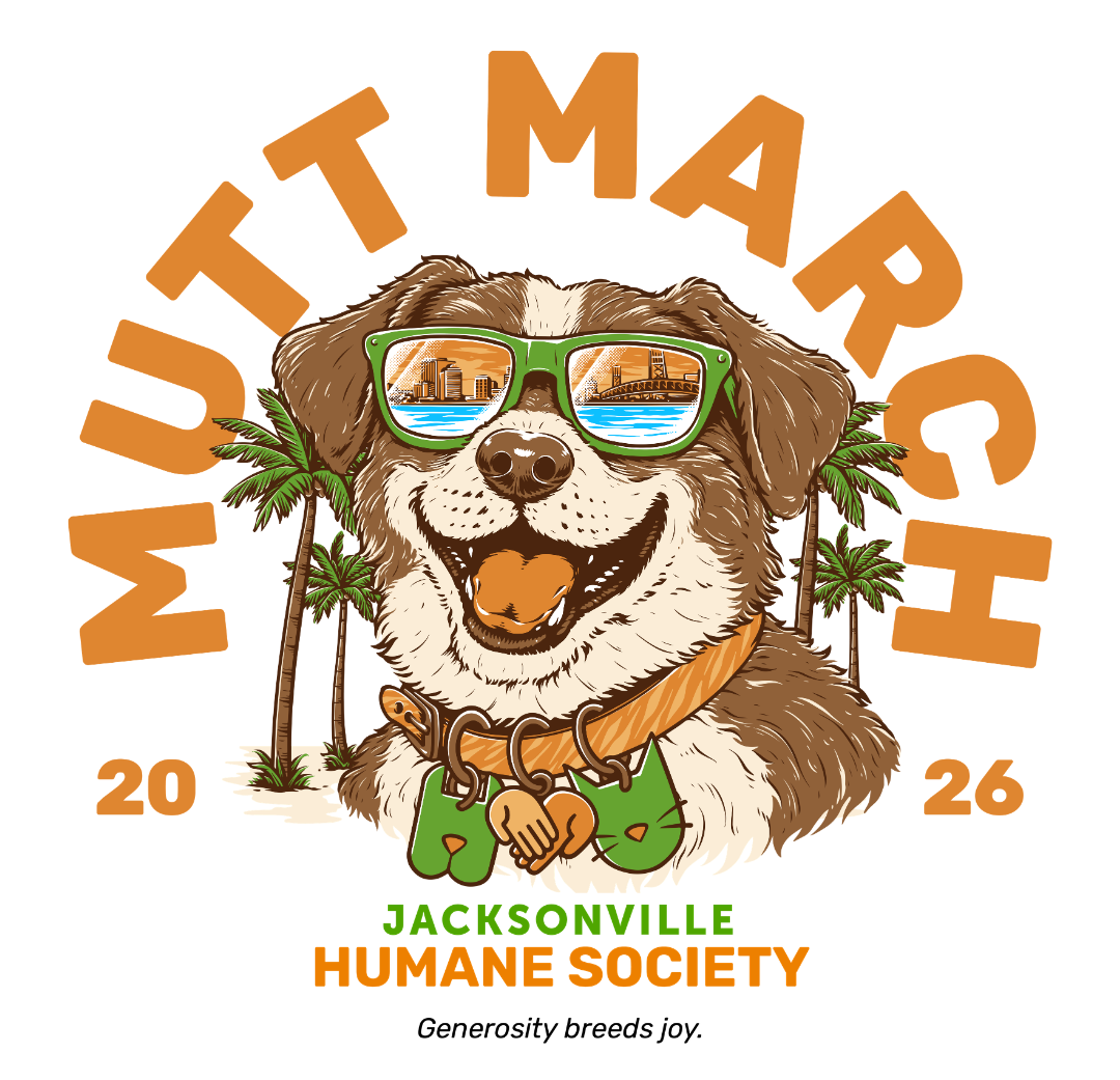 The Jacksonville Humane Society’s Mutt March is BACK! Join us on Sunday, April 12, 2026, for a fun-filled day for both ends of the leash. Enjoy a walk with your pup on the University of North Florida’s prestigious track (dogs are not required to attend), then shop local vendors, participate in our silent auction and chance raffle, and enjoy music and activities for the whole family.