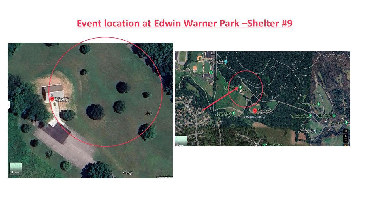 - Edwin Warner Park, Nashville (98 Vaughn Road – Shelter 9)