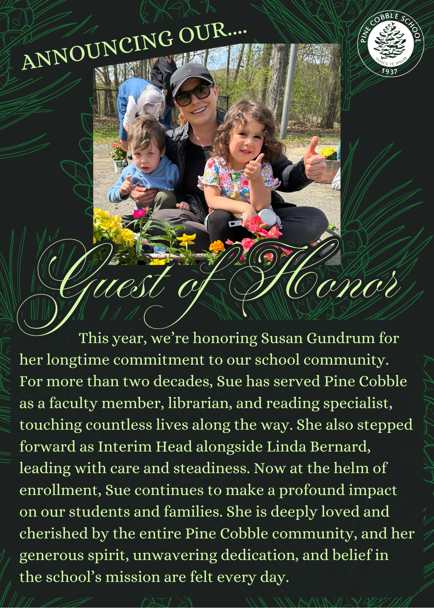 Proceeds benefit The Pine Cobble Fund, providing critical unrestricted support for our school. Please support our students with your ticket purchase, sponsorship, or donation to ensure the success of our fundraising event. THANK YOU!