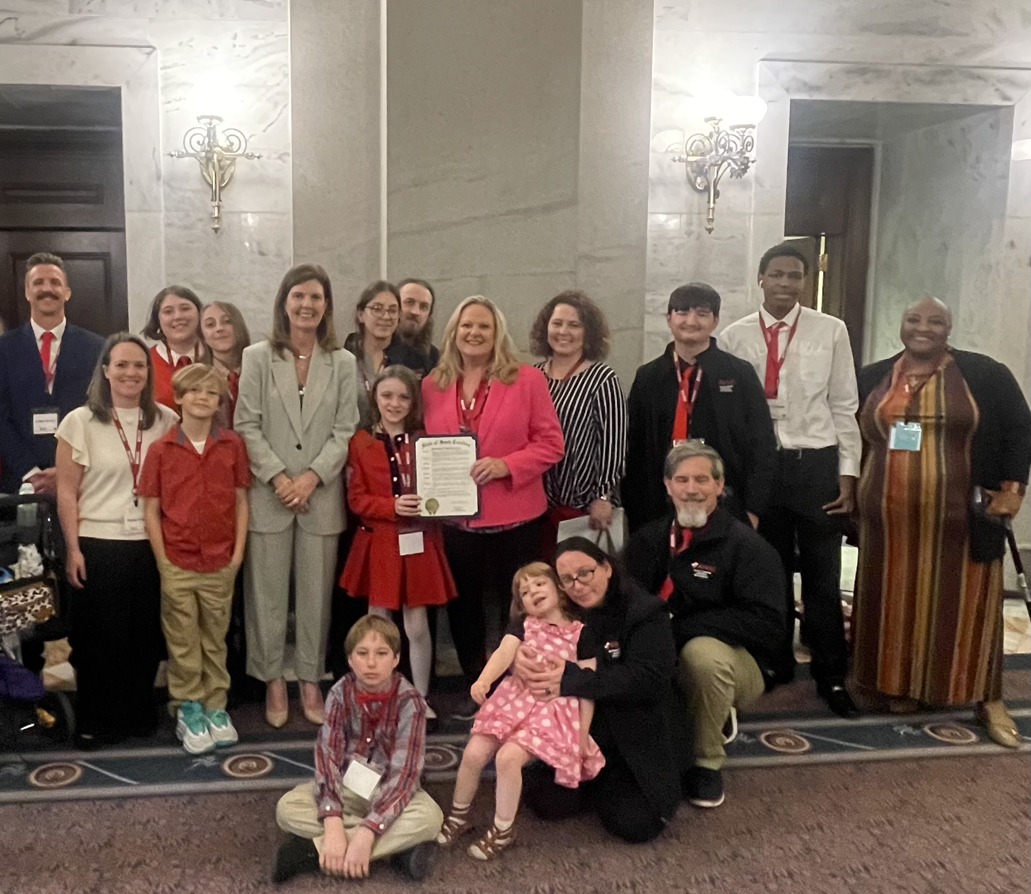 How do we do this? With a strong grass roots year-round Advocacy Coalition and Ambassador Program, we advocate here at home with our annual State Legislative Days in March, raise awareness during the National Bleeding Disorders Awareness Month of March, lighting our own hometown office city of Greenville Red, attend NBDF's yearly Washington Days along with 46 states and over 450 members advocates, and secure proclamations throughout all cities and counties in South Carolina! With quarterly trainings throughout the year, our advocates are informed and always ready to take action!