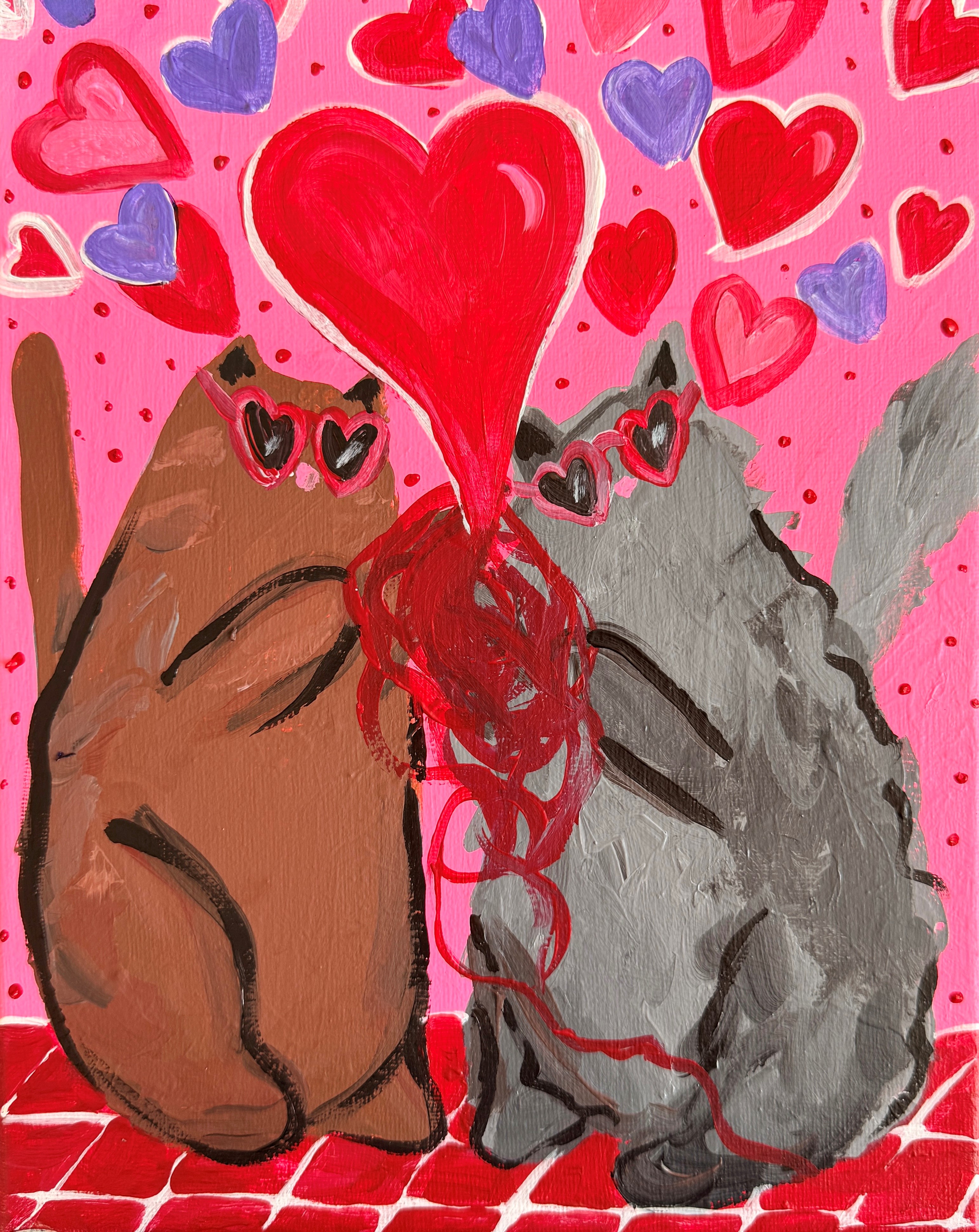 With step by step guidance, you'll create a charming Valentines themed masterpiece featuring some sweet lovable cats. All materials are included along with a glass of wine.