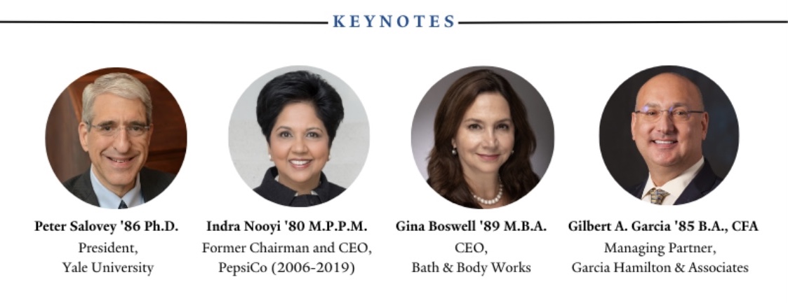 - 11:30 am — Fireside Chat Keynotes: Indra Nooyi '80 M.P.P.M. and Gina Boswell '89 M.B.A.