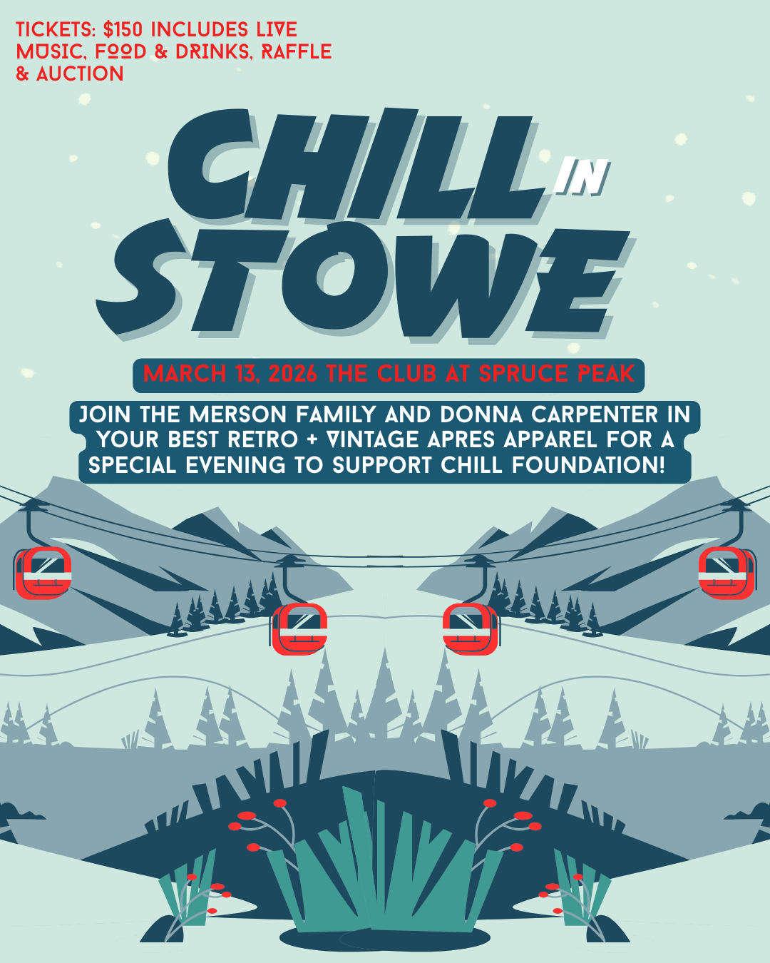 Please join co-hosts Donna Carpenter & The Merson Family on the eve of A Day For Jake for Chill in Stowe: an evening to support and fundraise for the Chill Foundation.