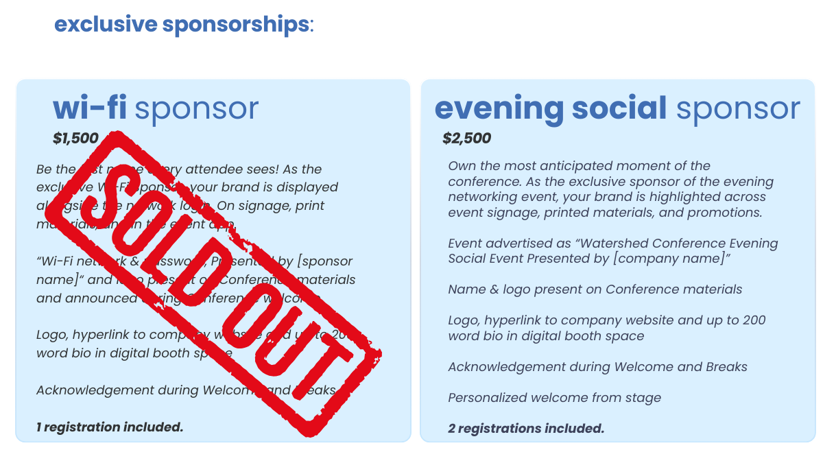 Be an Exclusive Sponsor of the 2026 Watershed Conference