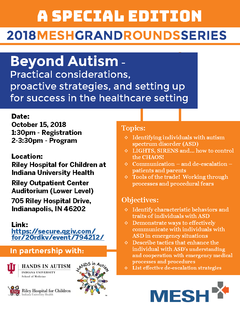 All events in the MESH Grand Rounds Series are free and open to the public. Seating is limited. Parking in pay lots, pay garages, and surrounding areas. Parking fees will NOT be covered.