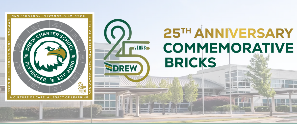 Honor the 25th Anniversary of Drew Charter School by purchasing a commemorative brick. Each brick will be permanently installed in front of the Elementary Academy at 301 Eva Davis Way. These bricks will be placed around a center "Eagle Circle" 12 foot x 12 foot design. All proceeds from this campaign will benefit Drew CARES.