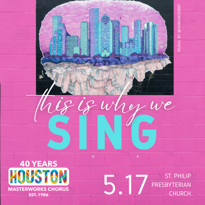 Celebrate four decades of musical excellence with HMC in “This Is Why We Sing,” a special 40th-anniversary concert that honors our rich history and dedication to music and collaboration in the Houston community. Join us for an evening that reflects the passion, joy, and tradition of our remarkable journey, and discover why we've been a fixture of Houston's vibrant musical landscape!