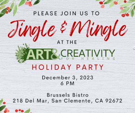You are invited to Art & Creativity for Healing's Annual Board & Staff Holiday Party! This year, we will be celebrating at Brussels Bistro in San Clemente on Sunday, December 3rd 2023 from 6:00-9:00 PM.
