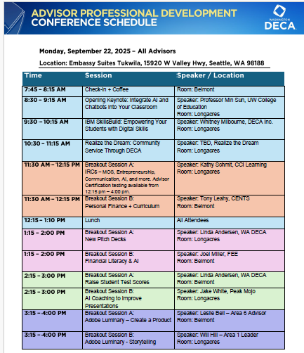Welcome to the 2025 Fall DECA Advisor Professional Development Registration!