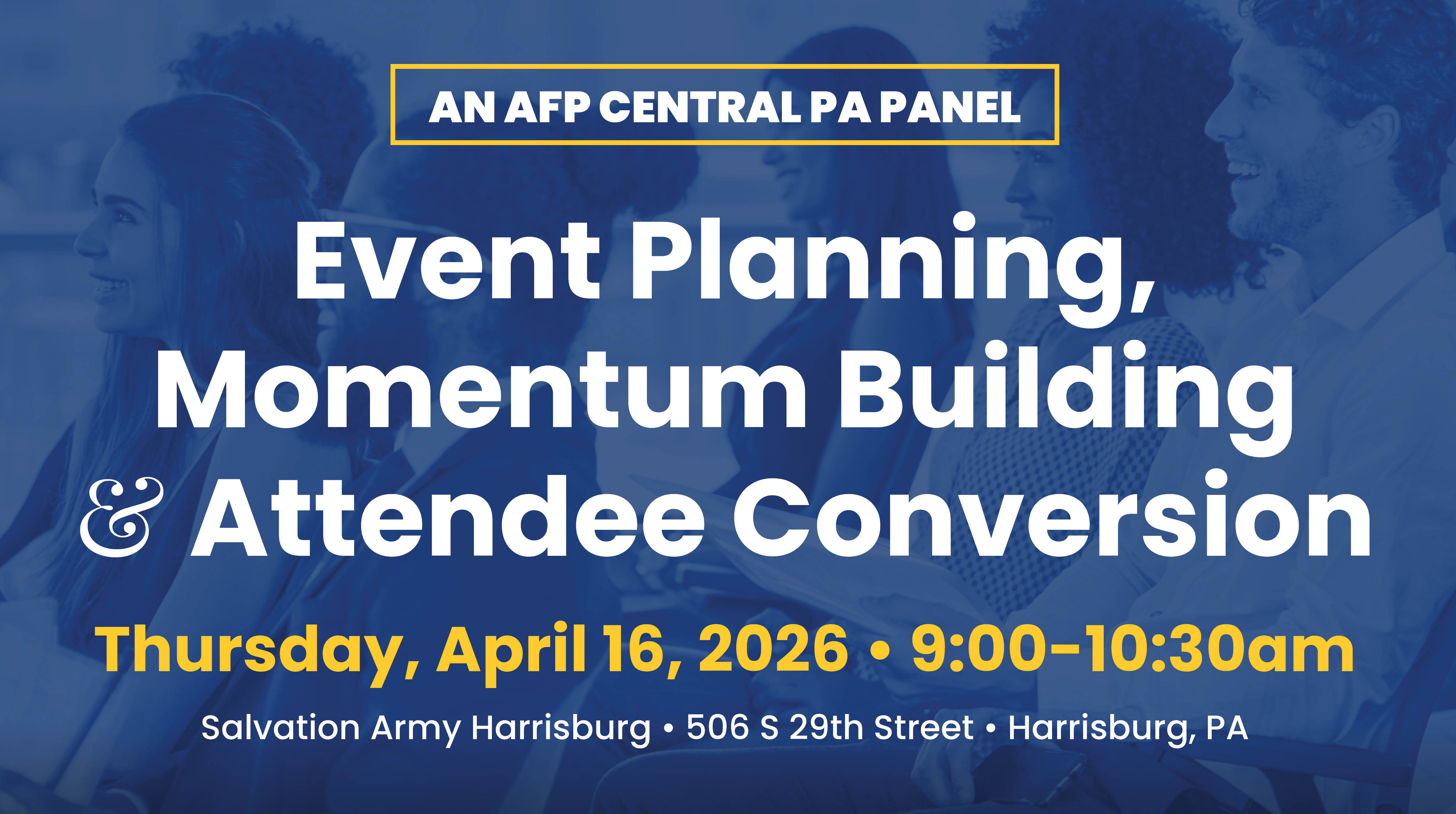 Join us for an engaging panel discussion with these incredible Central PA leaders who will share their real-world strategies for planning and promoting successful events. You’ll receive tips for attendee conversion, ways to create event “hype,” and several other actionable takeaways.