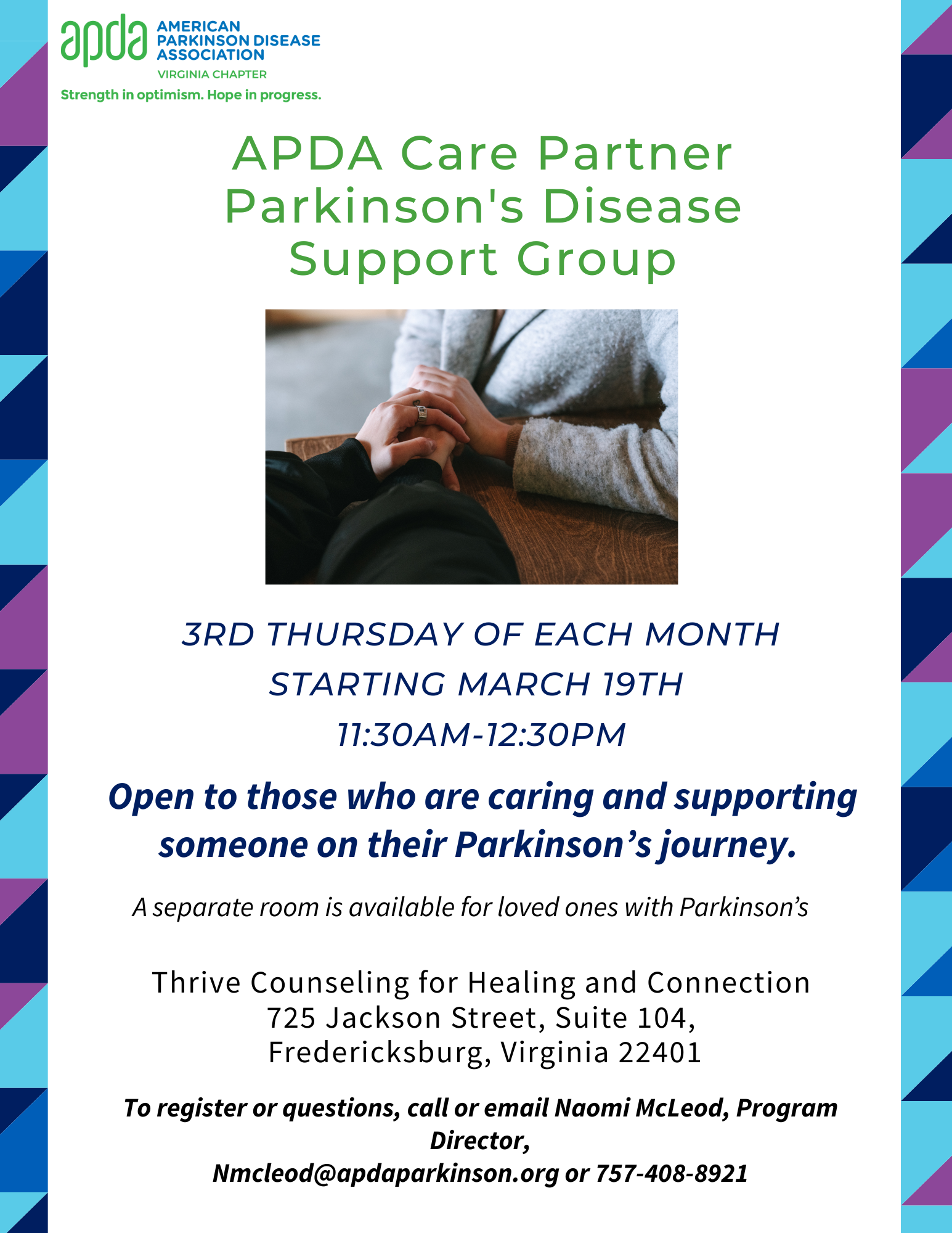 Open to those who are caring and supporting someone on their Parkinson’s journey.This group is meant to share experiences and support while navigating your Parkinson's journey.
