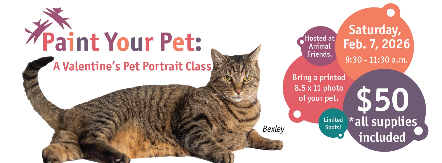 No prior painting experience is required. All supplies are provided, and 100% of the proceeds benefit Animal Friends and the animals still waiting for their forever Valentine.