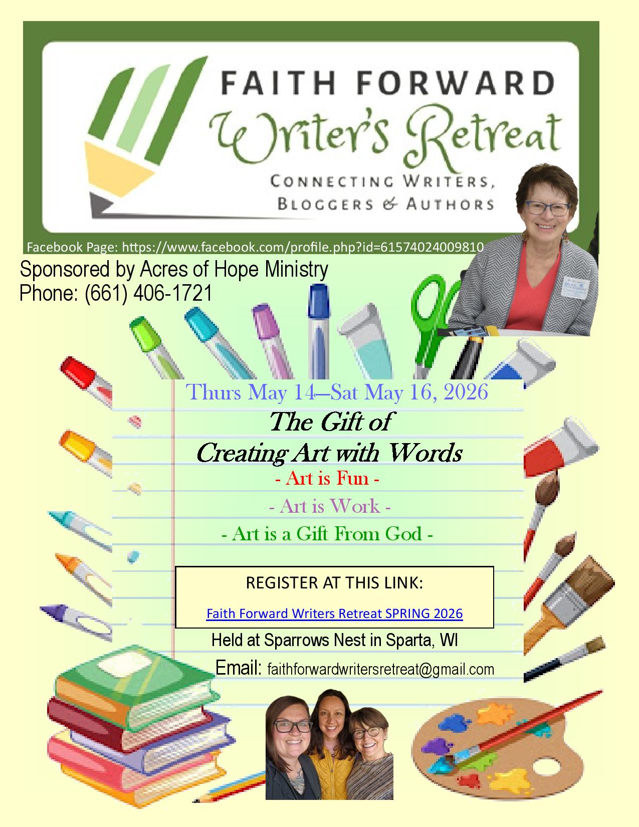 Email: faithforwardwritersretreat@gmail.com Phone: (661) 406-1721