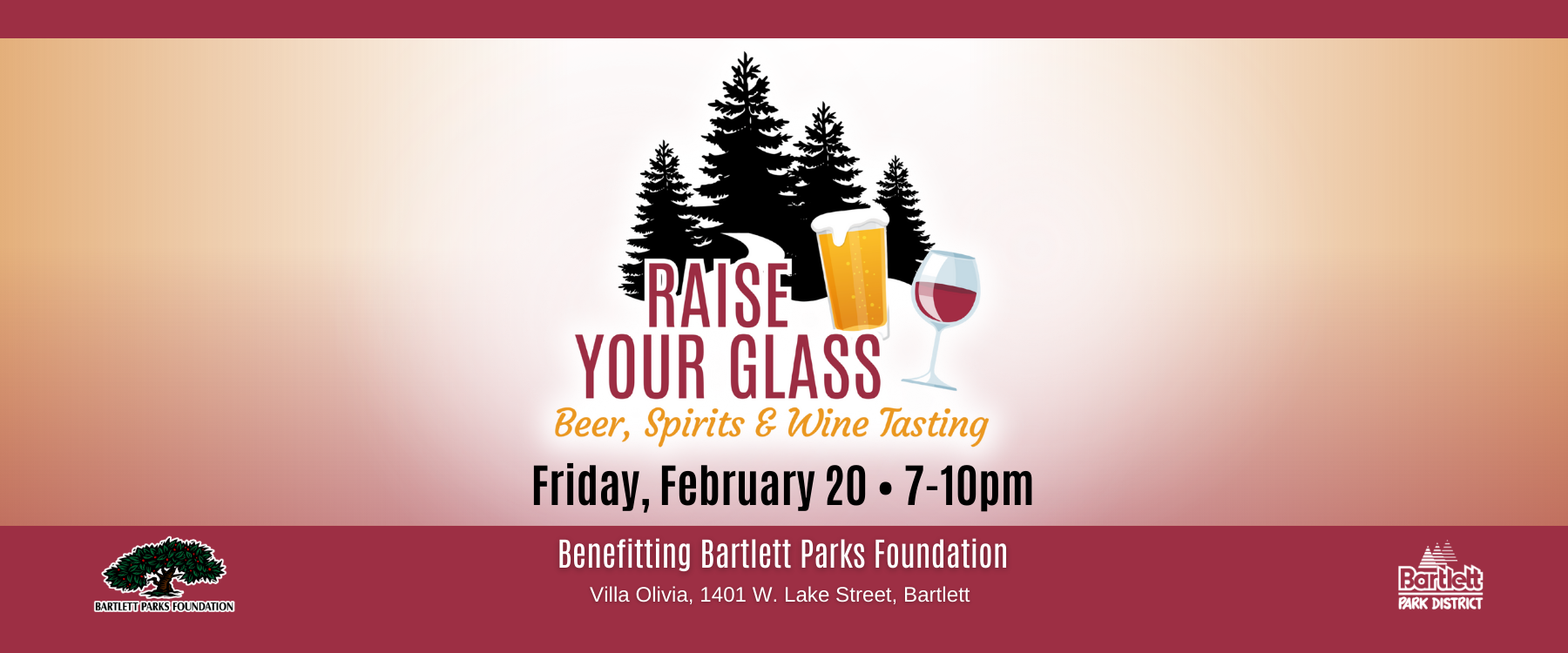 The Bartlett Parks Foundation will be holding its 11th Annual Raise Your Glass Event at Villa Olivia on Friday, February 20, 2026. Proceeds from the event will be used to fund recreation scholarships and community projects.