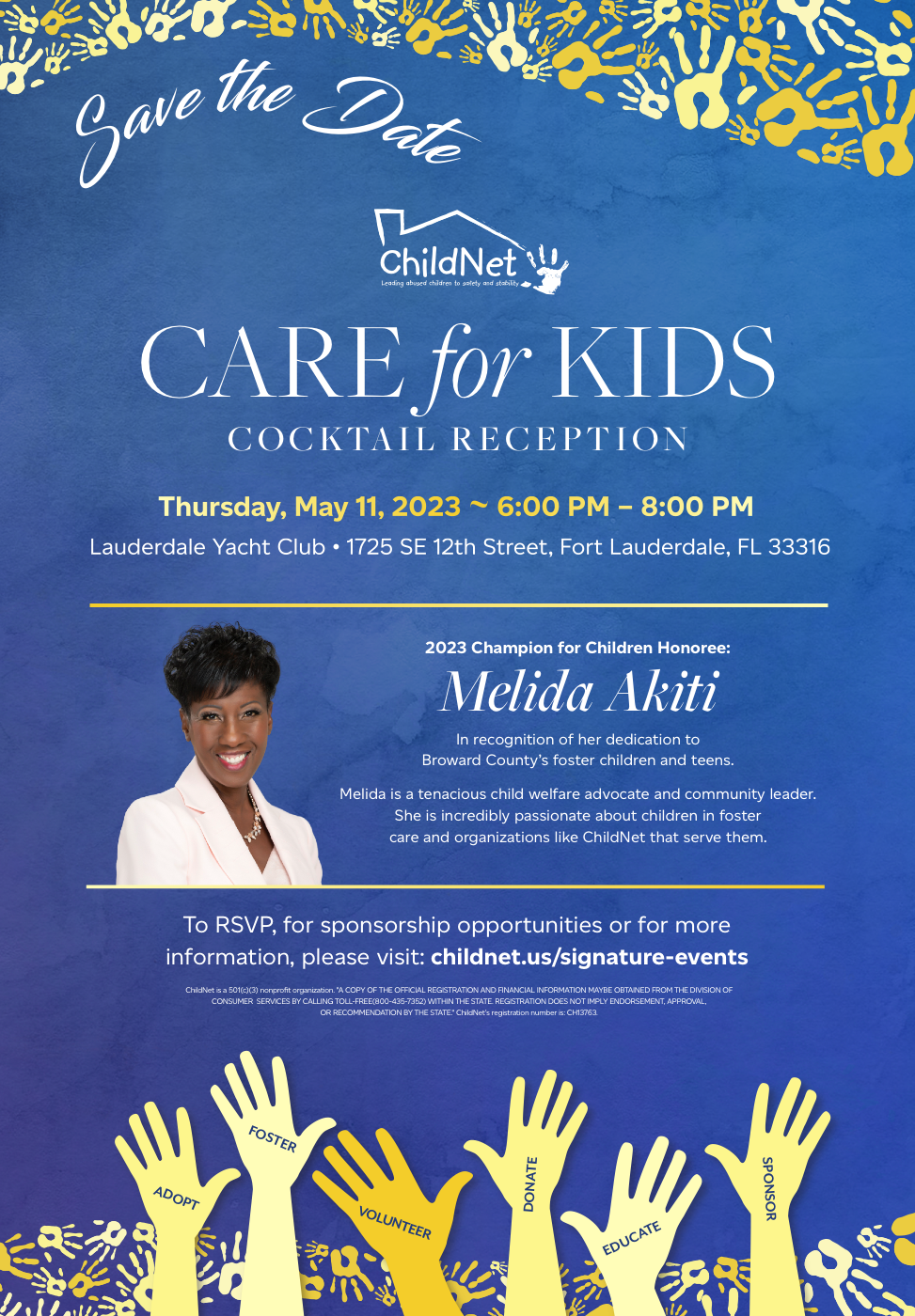We hope you will join us as we celebrate and recognize Melida for her passion, support, and dedication to child welfare causes.