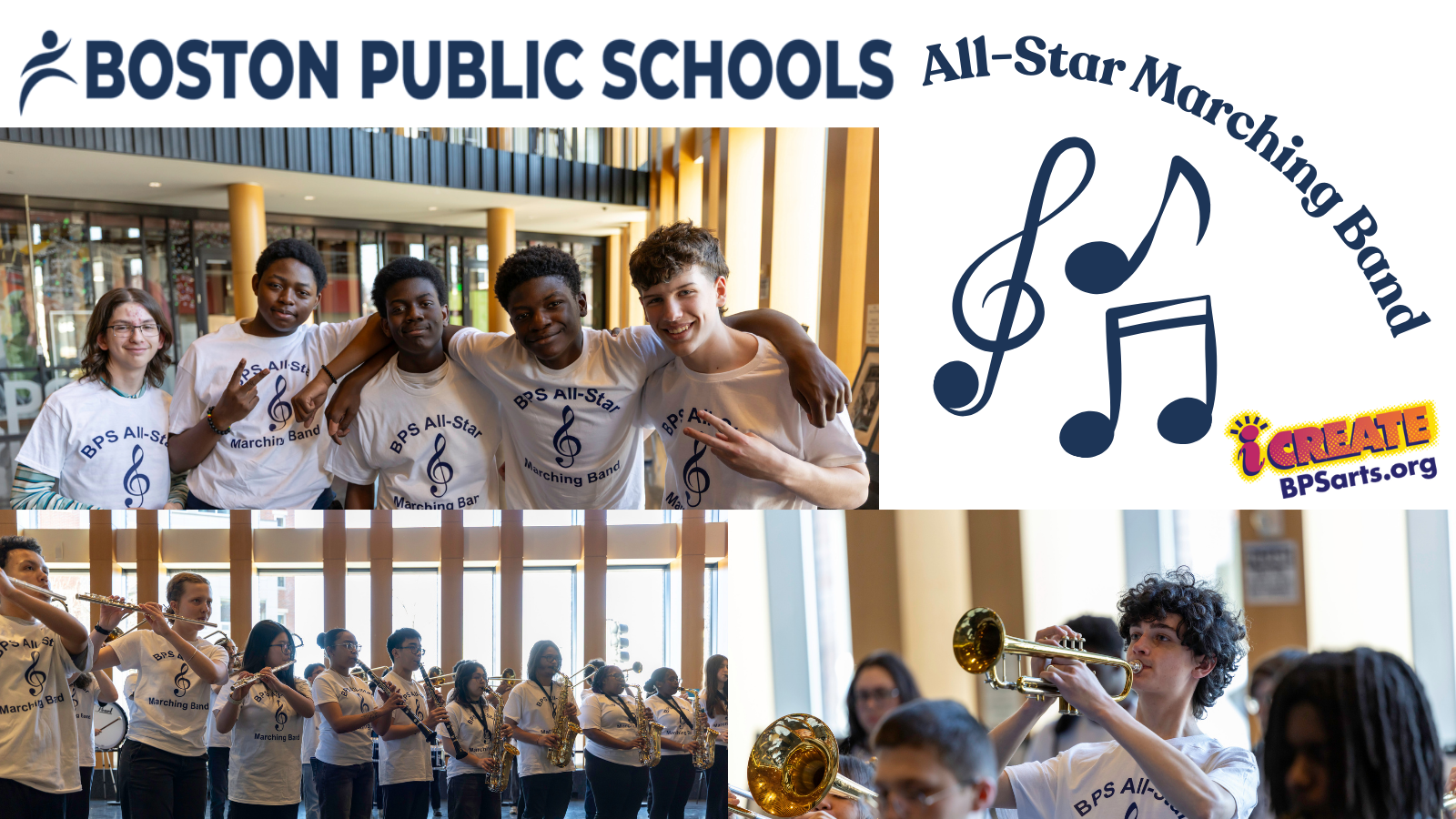 The Boston Public Schools All-Star Marching Band brings together 75 student musicians from ten BPS high schools to perform as one unified ensemble representing Boston Public Schools. Students rehearse during the school day within their school band programs and gather monthly on Saturdays for full ensemble rehearsals, culminating in major performances across Boston and New England. As the official ambassador ensemble for BPS, the band highlights the discipline, musicianship, and leadership developed through strong arts education.