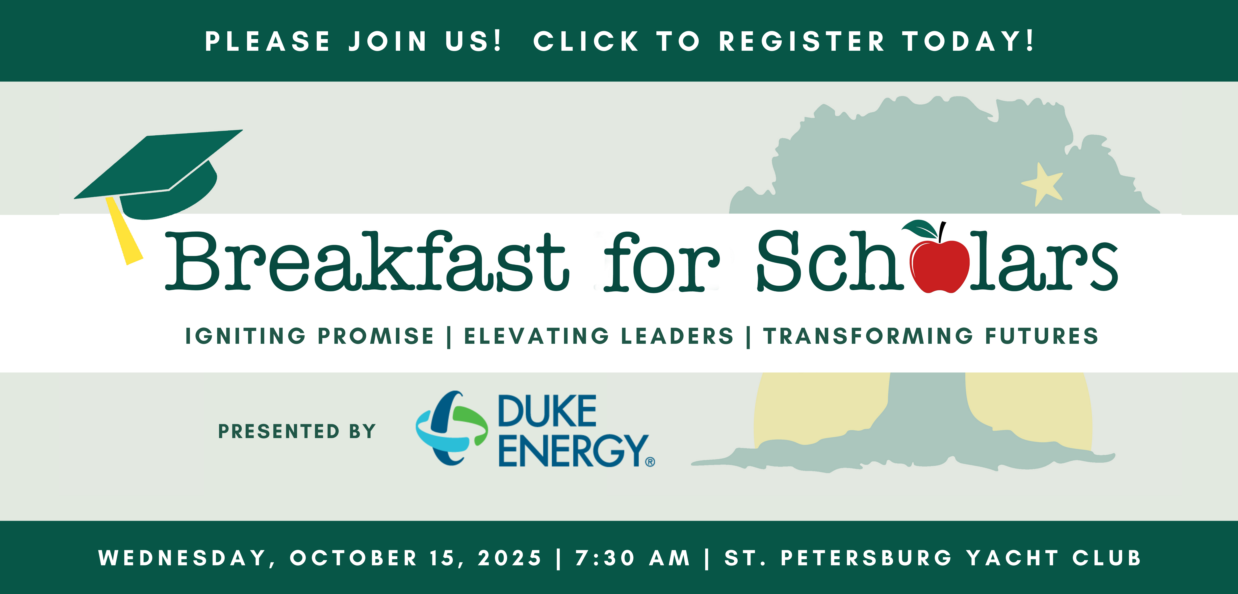Join us for an uplifting morning at Breakfast for Scholars, benefiting Academy Prep Center of St. Petersburg. Enjoy breakfast, inspiring stories from our graduates, and a special keynote by Dr. Jasmine Cohen-Young, Academy Prep Class of 2006, who is being honored with the Ben Fischer Alumni Mentoring Award and featuring Emcee Mark Wilson, Anchor, Fox 13 Tampa Bay. Stand with us in preparing tomorrow’s leaders, one scholar at a time!