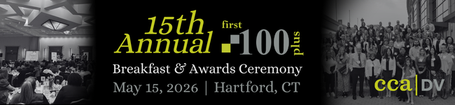 Please join us on May 15, 2026 at the Connecticut Coalition Against Domestic Violence's 15th Annual Breakfast & Awards Ceremony to honor this year's honorees and the First 100 Plus Class of 2025 for being dedicated leaders working across Connecticut to improve the lives of domestic violence survivors and their children. The needs of survivors are ever-present and have only grown more complex in recent years, and we are honored to work alongside these 100+ individuals who have been stepping up in their local communities to support survivors and ensure access to the life-saving services provided by CCADV’s 18 member organizations.