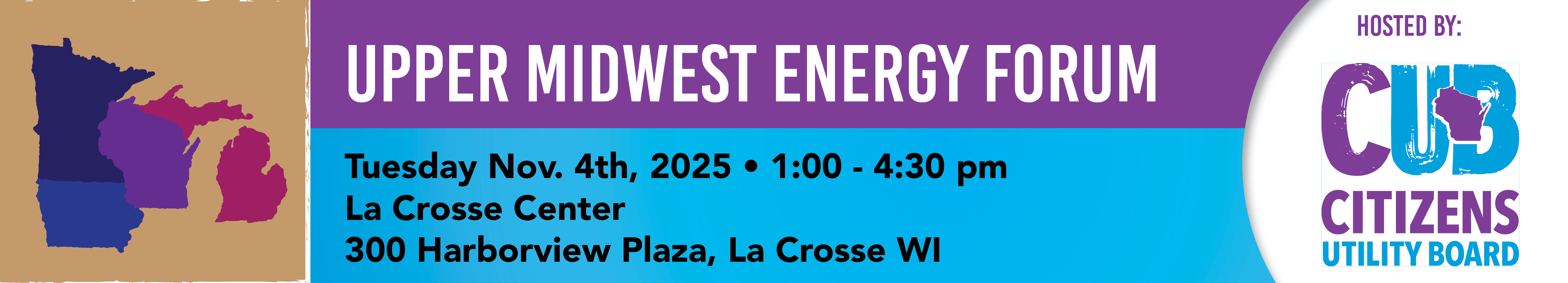 Join the Citizens Utility Board of Wisconsin for a deep dive into the evolving energy landscape at our upcoming Upper Midwest Energy Forum, designed to equip business leaders and professionals with the knowledge and strategies to navigate critical challenges in the evolving energy landscape. Attendees will leave with actionable solutions and insights to help guide their business decision making and operations moving forward.