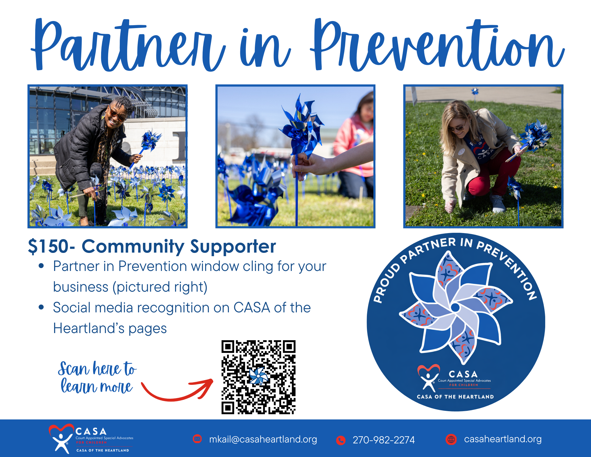 Become a community supporter, and let CASA showcase your business as a Partner in Prevention with a CASA Partner in Prevention window cling and on social media.