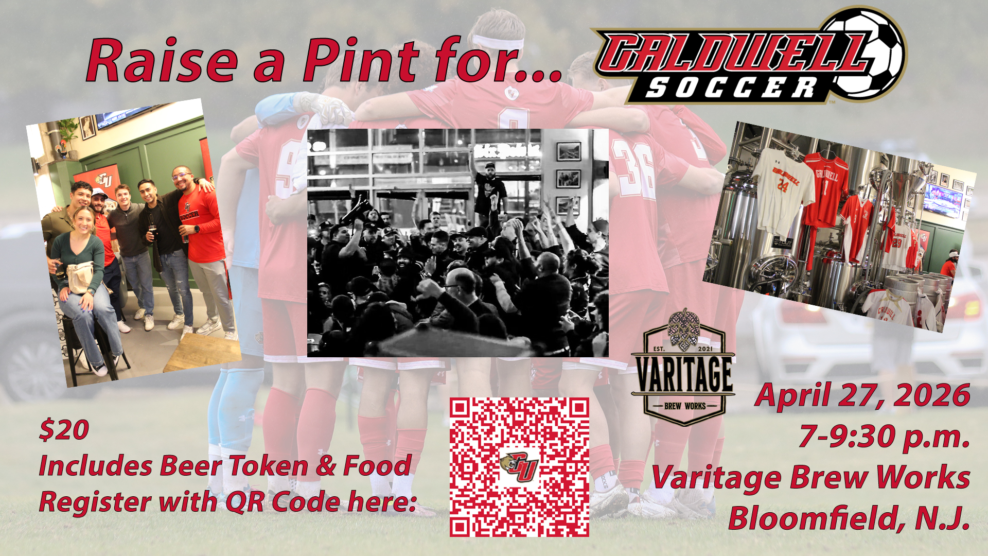 Join us for an opportunity to connect with second-year Head Coach, Max Correa and members of the 2025 squad, as well as catch up with alumni and other fans at the soccer-themed Varitage Brew Works, owned by Caldwell soccer alumnus, Mark Costa ('10).