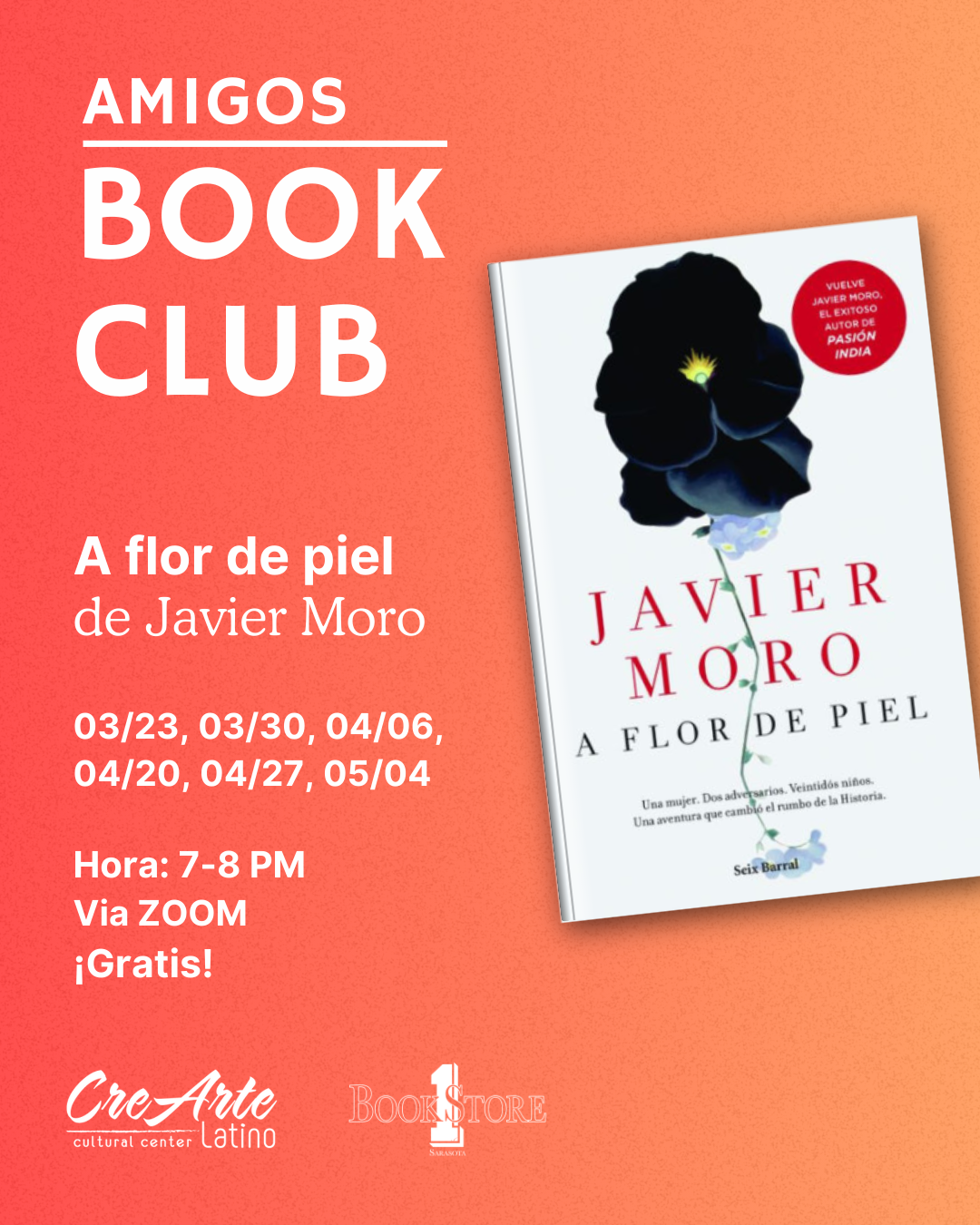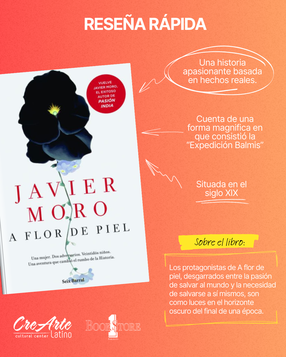 Te invitamos a formar parte de nuestro club de lectura en colaboración con Bookstore1Sarasota, donde exploraremos la novela A flor de piel de Javier Moro.