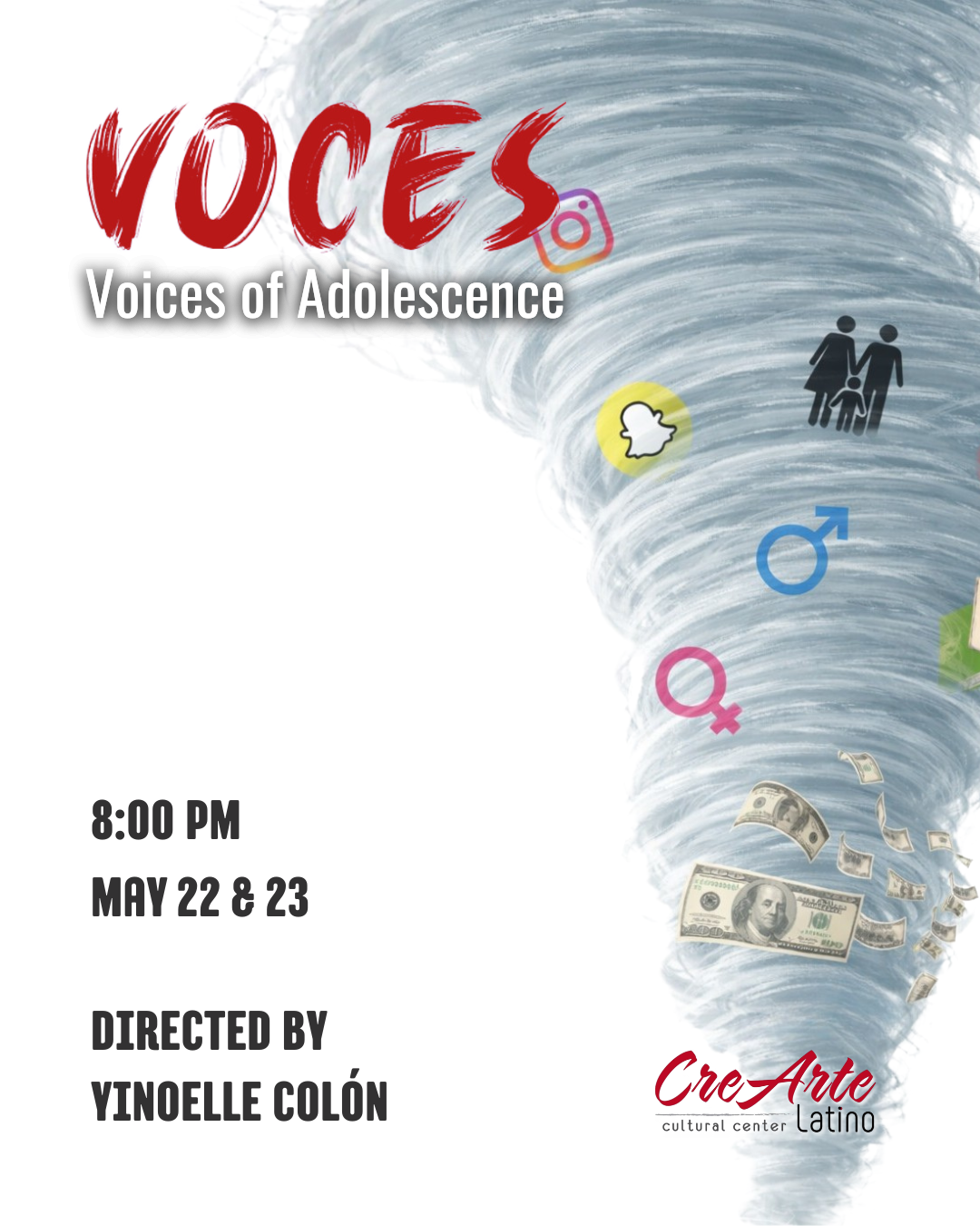 VOCES is an original project that seeks to foster an open conversation about relevant topics for the community. These oral testimonies allow us to share the true story and experiences of those around us. Based on conversations with people from the Hispanic community in Manatee and Sarasota County, these stories are woven together to create a space where these testimonials are read and performed in English by actors. This theatrical experience also provides the opportunity of a talk back at the end of each show where the audience, director, people who have shared their testimonies, and actors can discuss the impact of these monologues.