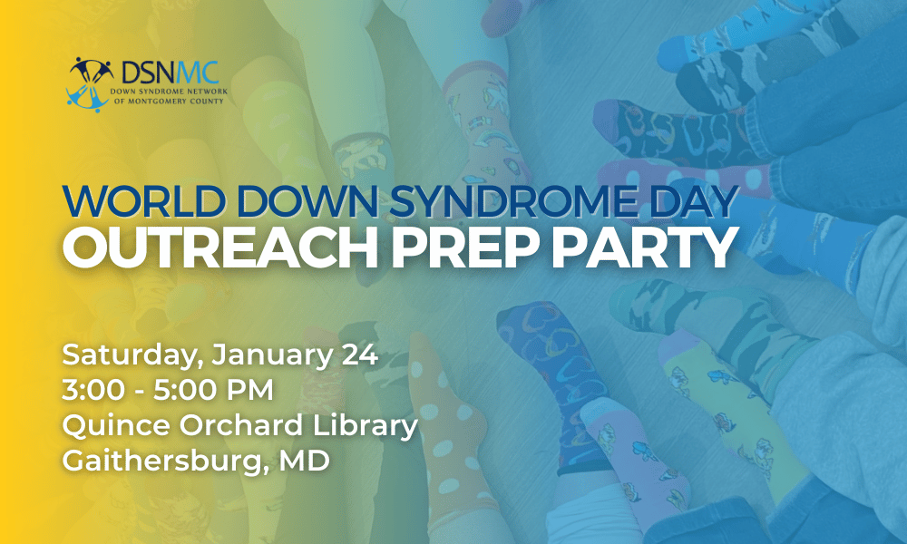 El Día Mundial del Síndrome de Down es un evento anual que se celebra el 21 de marzo (3/21) para celebrar y apoyar la vida de las personas con síndrome de Down. DSNMC necesita su ayuda el sábado 24 de enero, de 3:00 a 5:00 p. m., mientras preparamos paquetes de información e invitaciones para organizaciones locales, escuelas y patrocinadores para participar en la campaña Rock Your Socks y en las celebraciones del Día Mundial del Síndrome de Down.