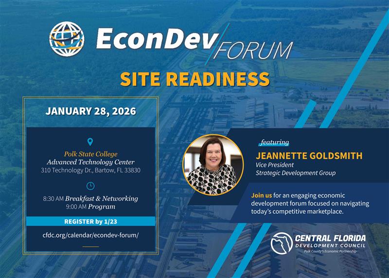 Join us for an engaging economic development forum focused on navigating today’s competitive marketplace, with a deep dive into site readiness and site selection in today’s market. Featuring Jeannette Goldsmith, a Vice President with Strategic Development Group, this dynamic event will explore the critical factors that influence business location decisions, key challenges communities face in preparing competitive sites, and strategies that support sustainable economic growth and long-term community success.