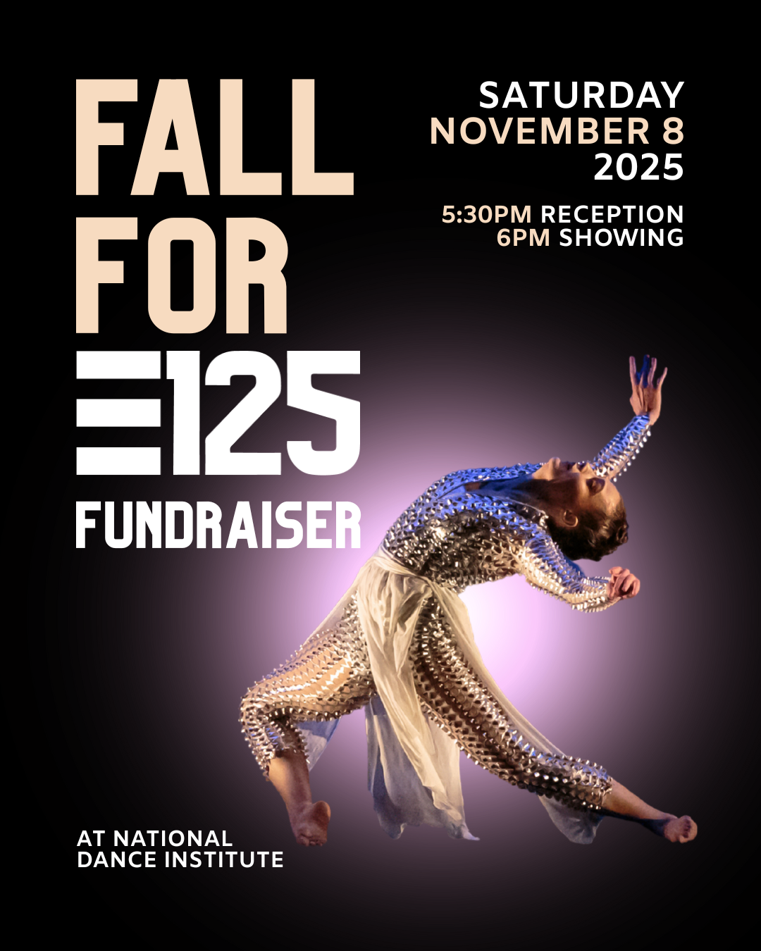 Join us for Fall for E125 on November 8, 5:30-7:30PM at the National Dance Institute in Harlem. Mark your calendars for an evening of artistry and creative fellowship with Artistic Director Tiffany Rea-Fisher and the company dancers.