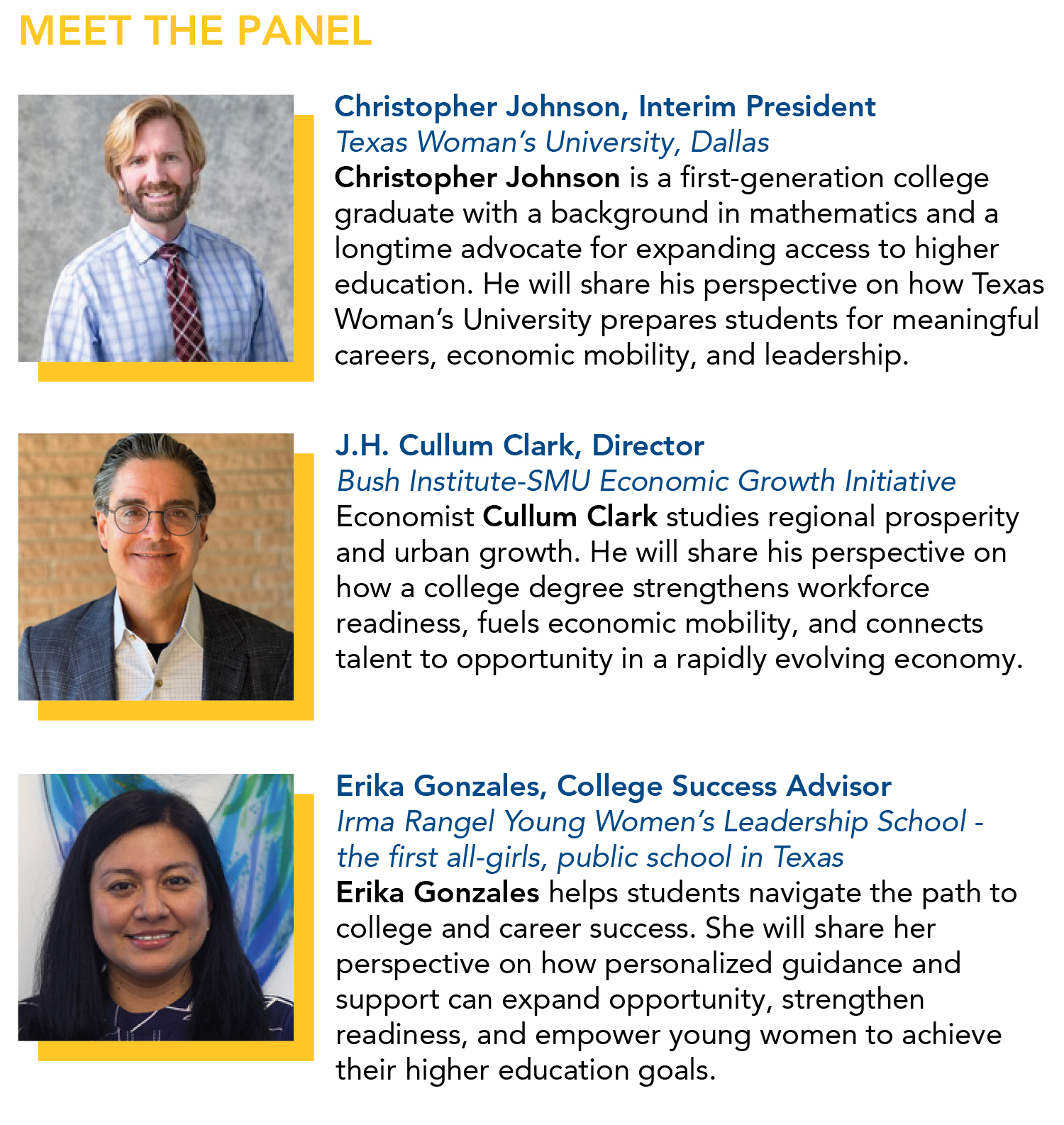 Join us for a discussion on why a college degree remains the strongest path to career opportunity and long term economic mobility.