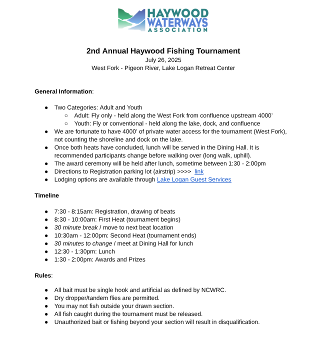 Haywood County’s second annual fishing tournament, designed to foster youth fishing here in Haywood County and bring competitive fishing to the watershed.