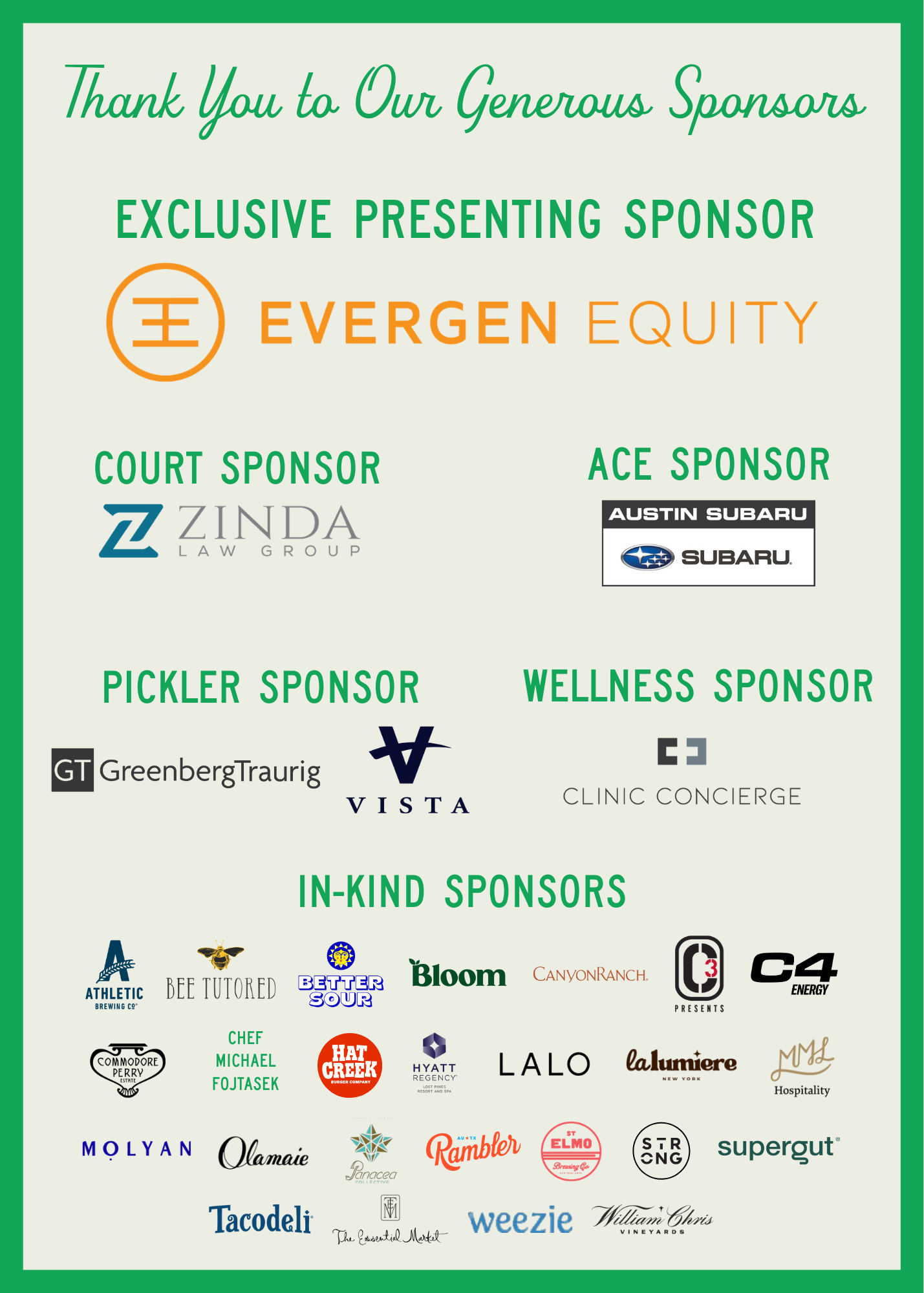 Please email Michelle Monroe at mmonroe@friendsaustin.org learn more about sponsorship opportunities, or Sheila Naya at snaya@friendsaustin.org with questions about registration or divisions, or to explore how you can be part of The Big Pickle.