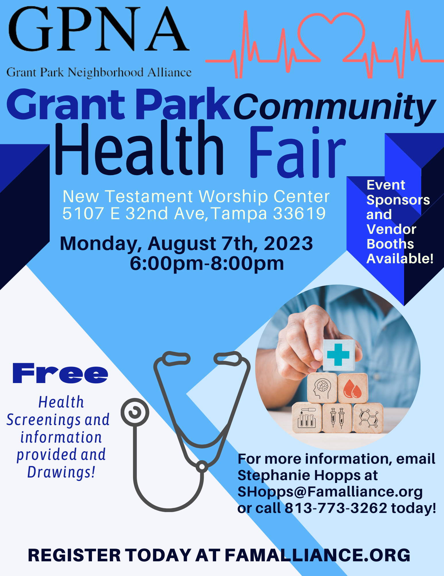 Join FAMA & the Grant Park Neighborhood Alliance for our third Health Fair! FAMA continues to grow and expand to offer more value added services and helps to the Grant Park Community.