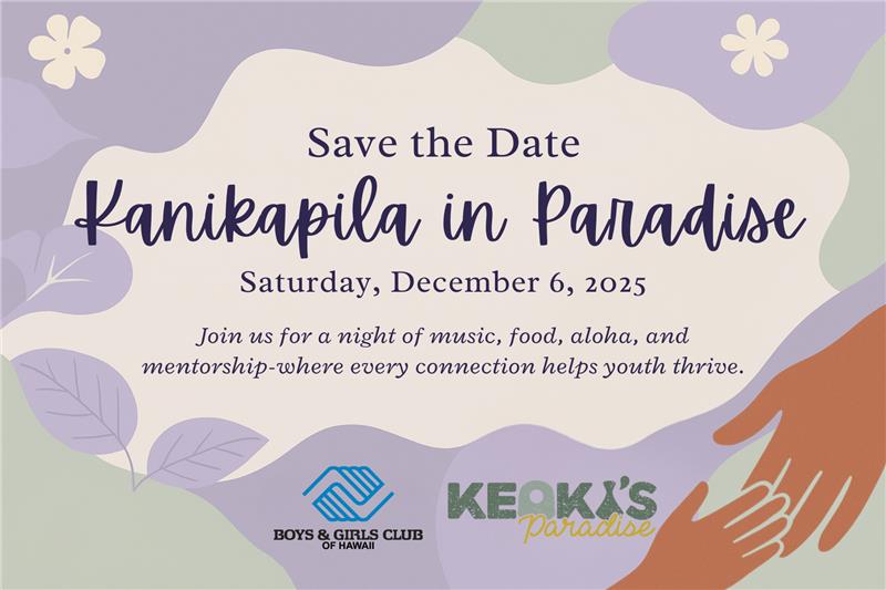 Please join us for an evening of Culture & Aloha while making a contribution to support the youth at all Kaua'i Clubhouses. The evening includes entertainment by Halau Mokikhana Leina Ala, Ku'i Kalo by Kumano I Ke Ala o Makaweli, Live Music by Kaiona with a short presentation by the Boys & Girls Club of Hawaii.
