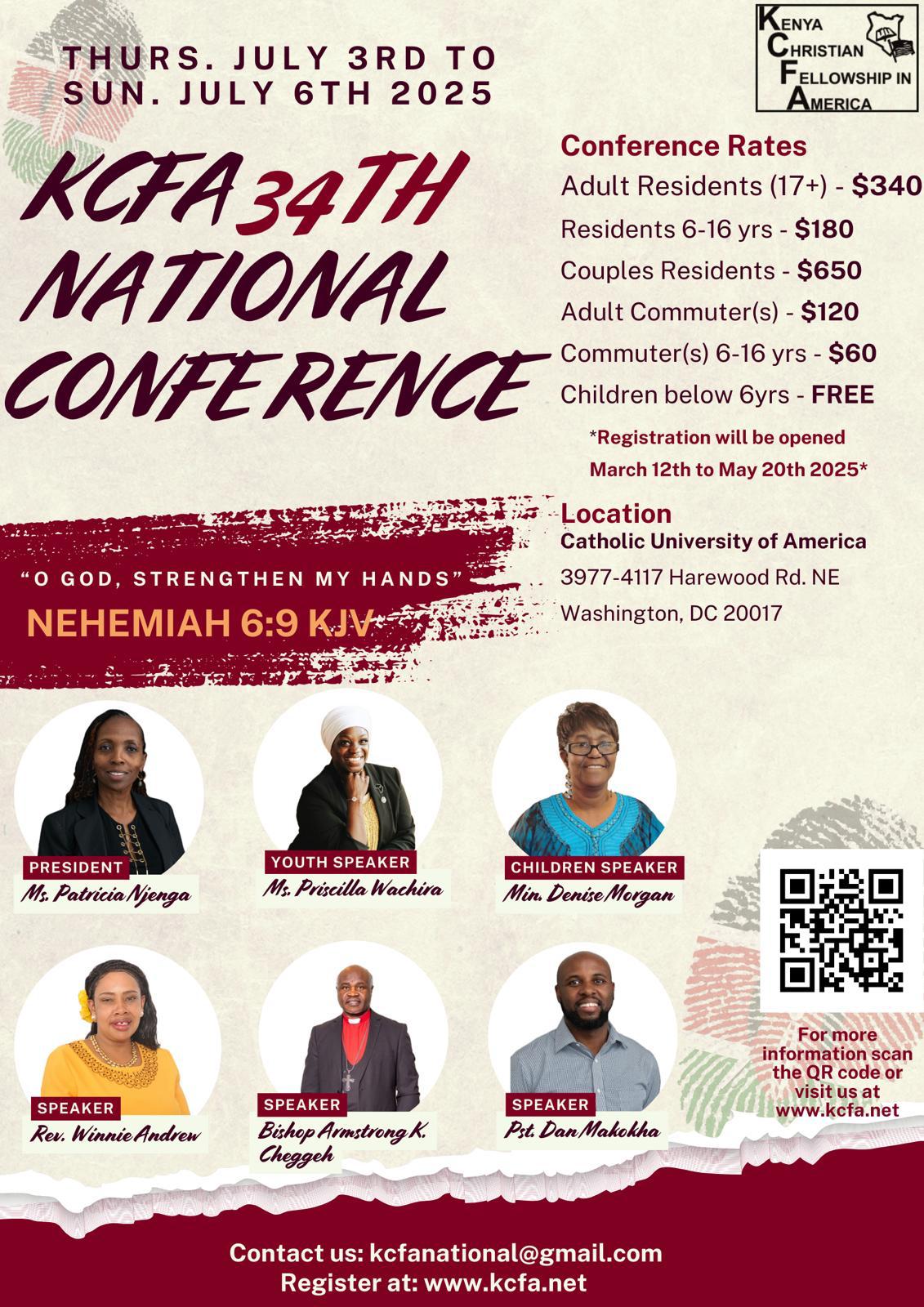 The KCFA Annual Conference is held every first weekend of July and brings together Kenyans from all over North America. KCFA has local chapters spread out through the USA and Kenya, and this yearly conference gives all members and their friends an opportunity to fellowship,eat, play and worship God together for an entire weekend!