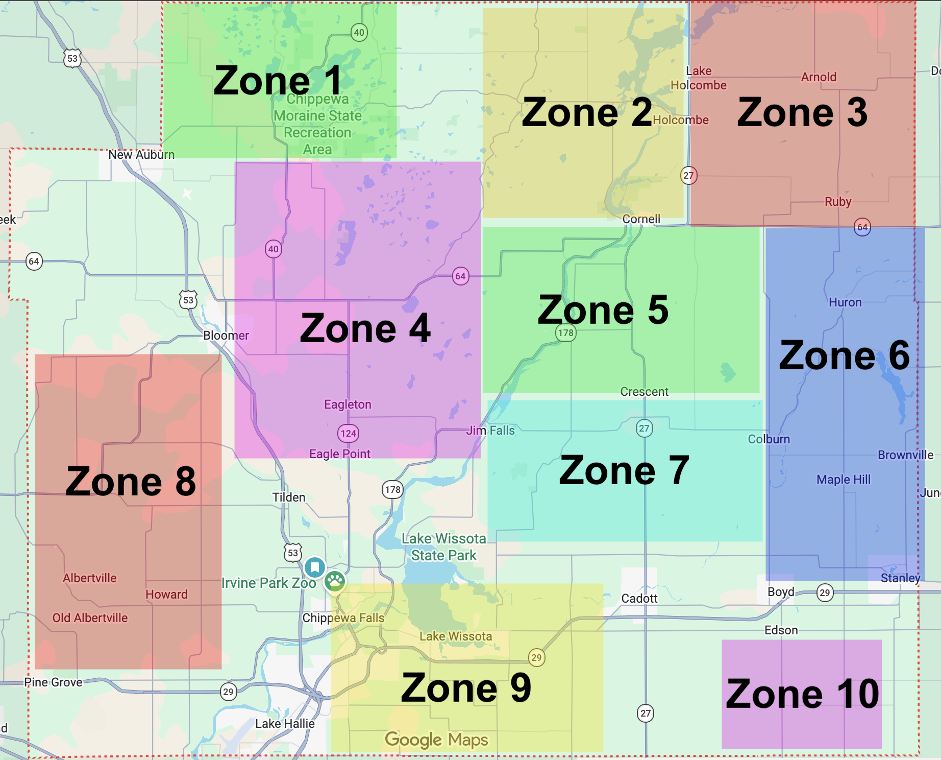 The Annual Midwest Crane Count is one of the largest citizen-based wildlife surveys in the world. The primary purpose of the count is to monitor the abundance and distribution of cranes across the Upper Midwest. Every April, volunteers travel to their local wetlands to count cranes. This annual count of Sandhill and Whooping Cranes covers 6 states, 120 counties and over 1,500 volunteers. Last year in WI more than 13,000 cranes were counted. Beaver Creek’s Citizen Science Center holds counts in both Chippewa and Eau Claire Counties. This is a great opportunity for all ages. You can participate solo or as a small group. This is a free, easy and fun way to participate in citizen science, observe cranes and take part in the start of spring migration. Pick your survey location and zone at registration (see maps below).