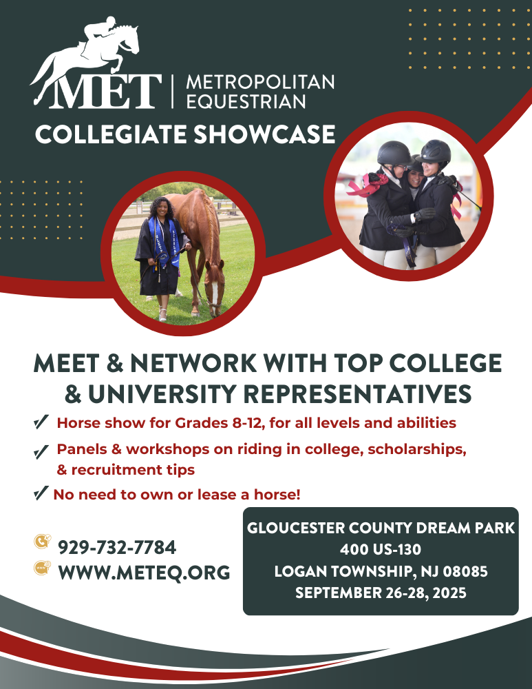 The Metropolitan Equestrian Collegiate Showcase is coming to Gloucester County Dream Park from September 26–27, 2025!