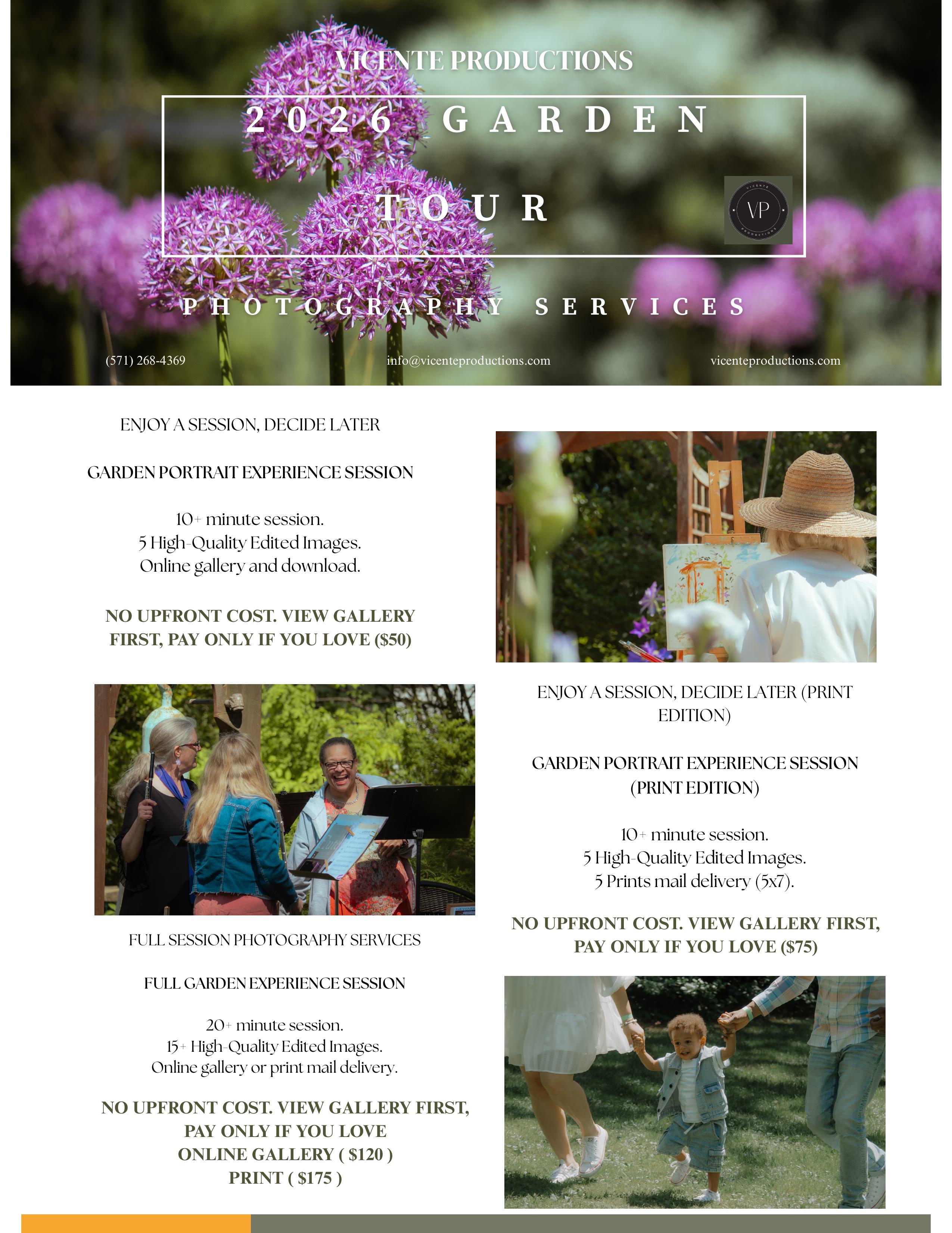 Vicente Productions is back this year to make the most of all those beautiful backdrops! To schedule your session, please reach out to info@vicenteproductions.com or call (571) 268-4369. NO UP FRONT PAYMENT REQUIRED this year!