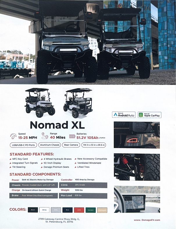 Don’t miss your chance to take home a brand‑new Denago Nomad XL four‑seater golf cart!!