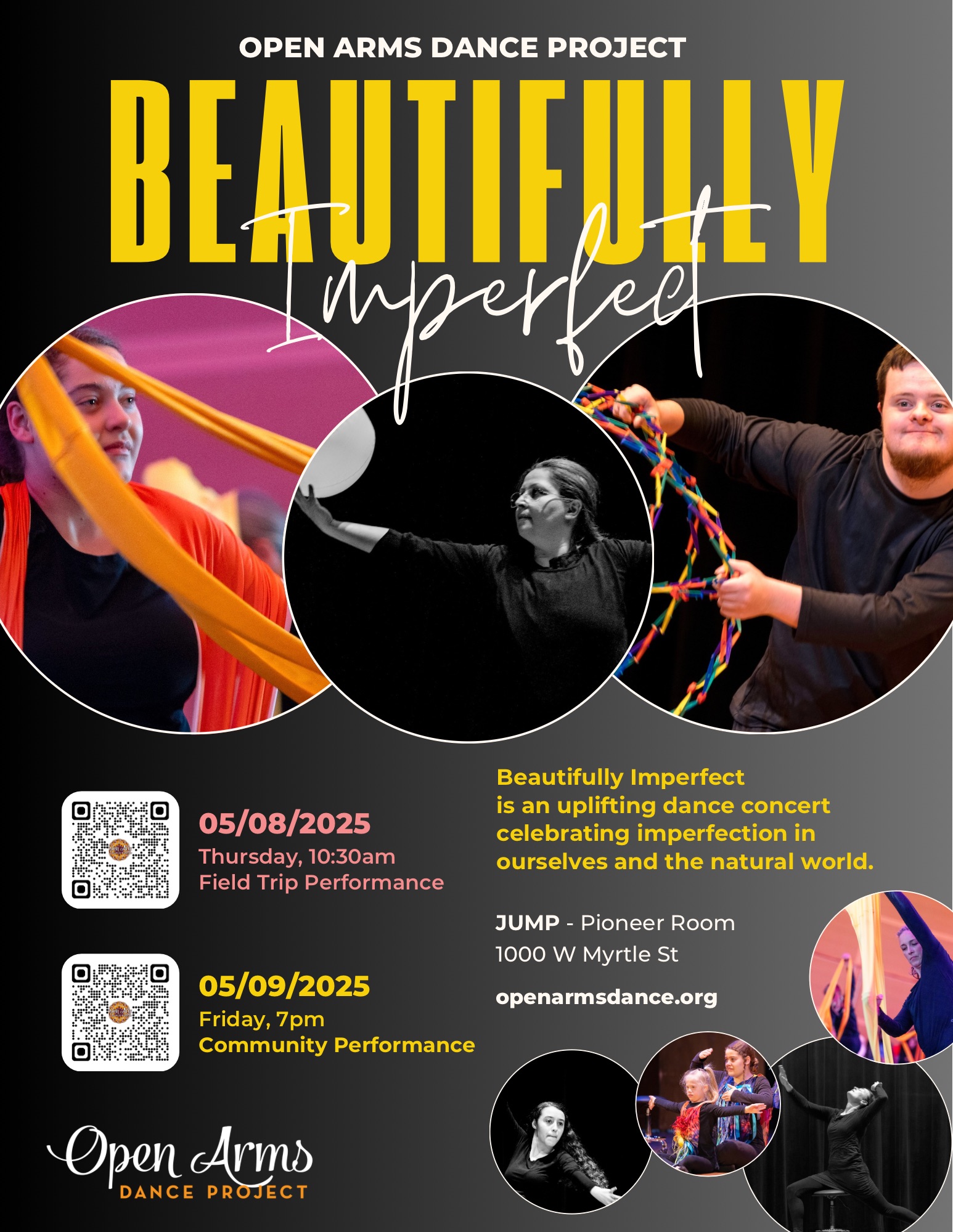 What does this look like in a dance concert? It’s like nothing you’ve ever experienced, but wished you had - and now you can! Our intergenerational and inclusive dance company will perform co-created choreography. You’ll hear music from around the world, plus some familiar, toe tappin’ songs. The culminating effect will be surprising, validating, and absolutely uplifting for all who attend!