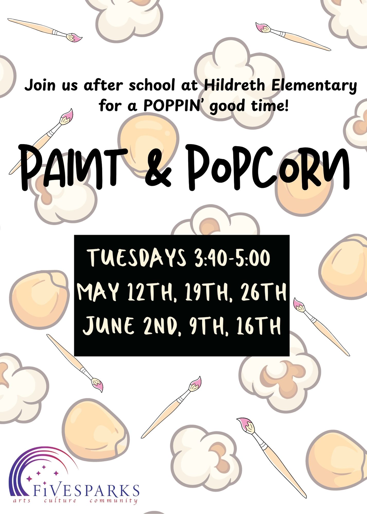 Join us for a six week guided painting class filled with color, creativity and plenty of savory snacks. Painting paired with an epic popcorn bar will be sure to curb those afternoon snack cravings and unlock some pent up creativity! All popcorn and painting supplies included!