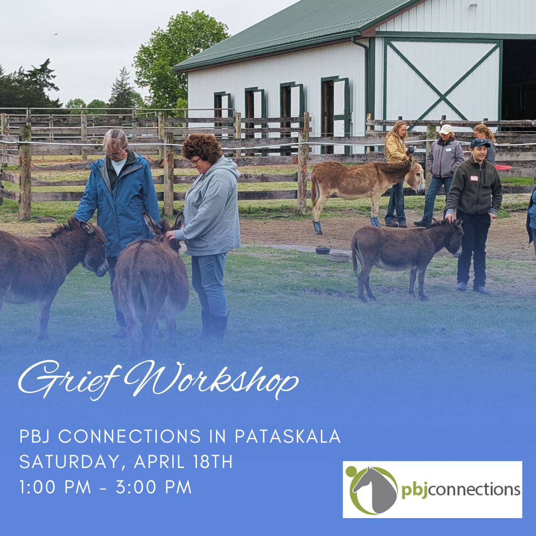 PBJ Connections and the grief team from Mount Carmel are coming together to bring a unique hands on learning experience to address grief. This workshop will feature education, support and an activity featuring our therapy horses centered around grief.