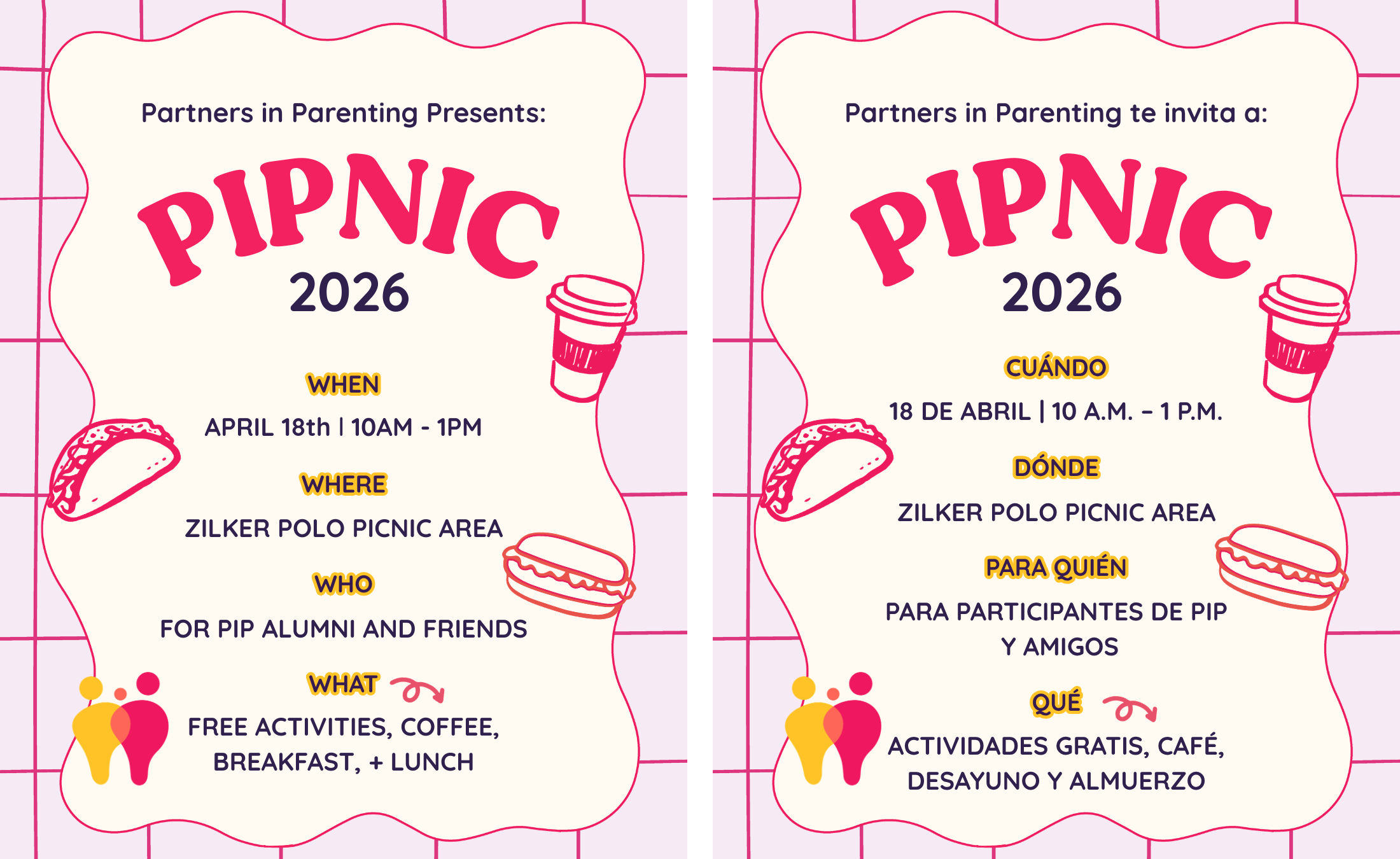 PIPnic is a free, family-friendly alumni appreciation event hosted by Partners in Parenting. On April 18th, we are inviting PIP parents and friends from across our community to come together for a relaxed morning of connection, play, and celebration.