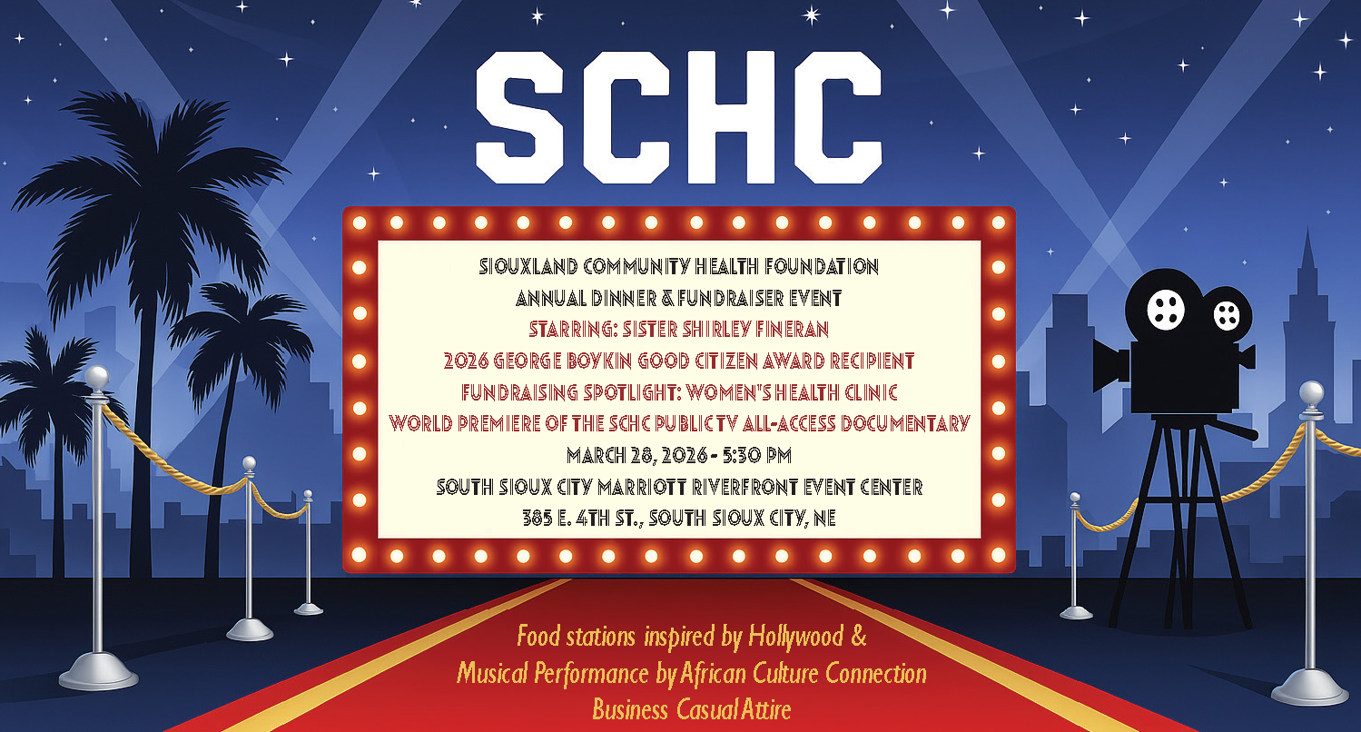 You are invited to our 15th Annual Dinner & Silent Auction benefiting the Siouxland Community Health Foundation! This year, we will honor Sister Shirley Fineran for the George Boykin Good Citizen Award, and feature a musical performance from the African Culture Connection performance group from Omaha.